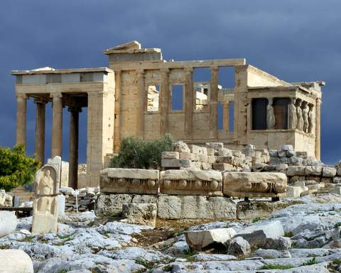 We climbed 150 steep and slippery steps to the top of Acropolis Hill which houses the Erectheum, The Temple of Wingless Victory and the Parthenon.