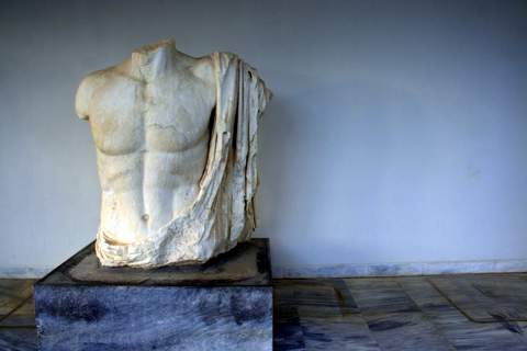 An indoor museum is also on the grounds. It houses an impressive collection of Greek statues, body armor, shields, helmets and small figurines.